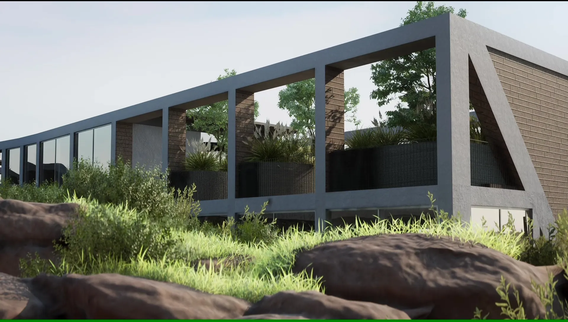 Emphasizes natural greenery and landscaping, creating a calm and refreshing environment above the city.